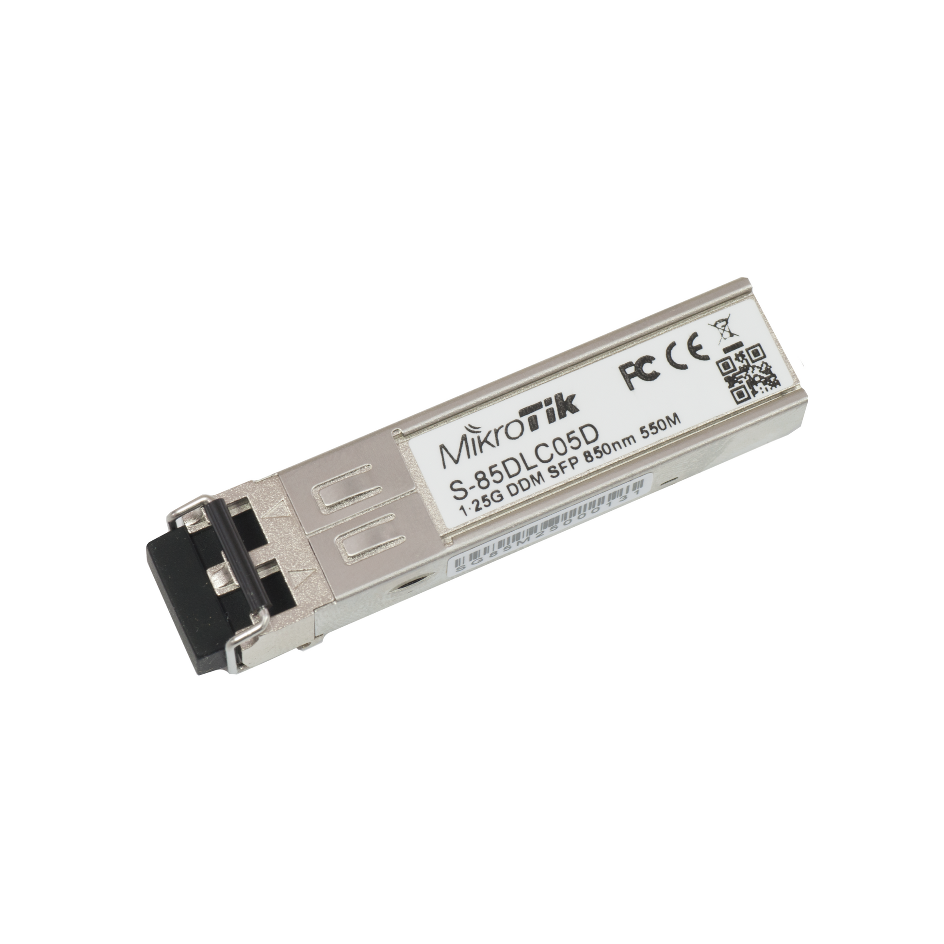 The MikroTik S-85DLC05D is a 1.25G SFP (Small Form-factor Pluggable) transceiver designed for short-range multimode fiber connections. Operating at an 850nm wavelength, it supports data rates up to 1.25 Gbps, making it suitable for Gigabit Ethernet and 1G Fiber Channel applications.